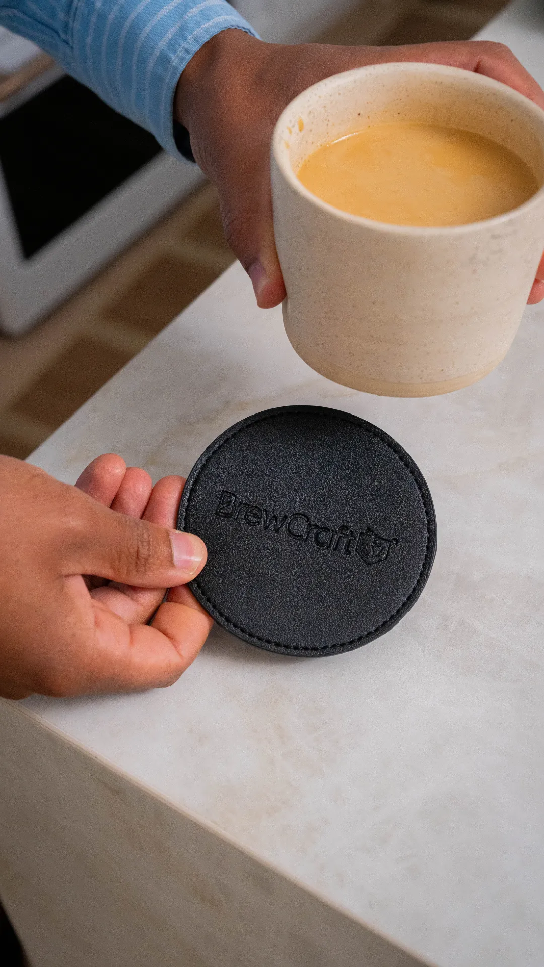Crafted from premium PU leather, these coasters shield your surfaces from heat and spills while adding a refined touch.