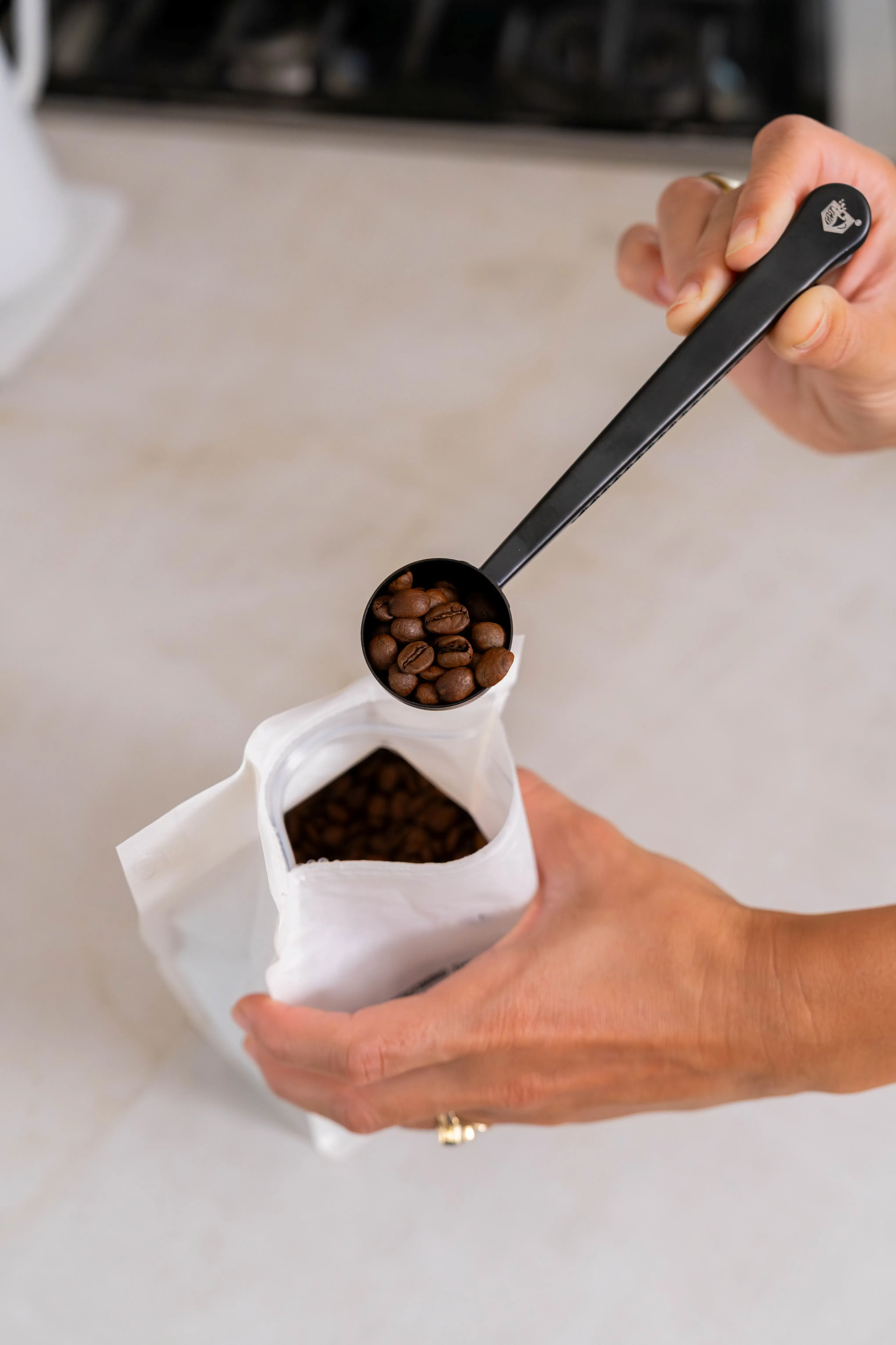 The stainless steel scoop clips are a 2-in-1 tool — they measure your coffee while also sealing your bag to keep beans fresh.