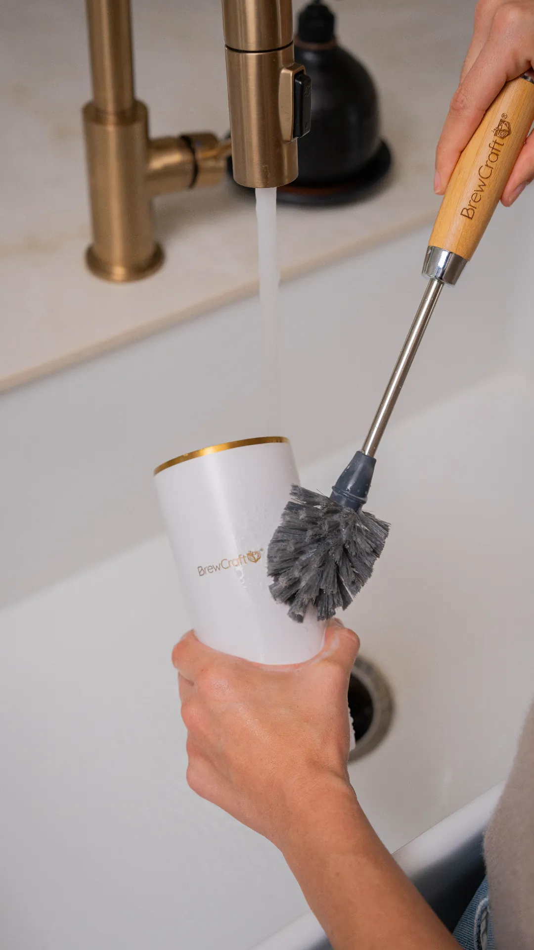 Tough nylon bristles reach every corner of your tumbler. Unlike ordinary brushes, they spring back to shape with a dip in hot water -ready to clean like new every time