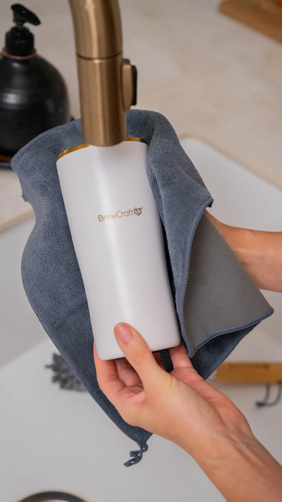 The soft microfiber cloth polishes your tumbler inside and out, removing smudges and spots while leaving surfaces smooth and flawless.